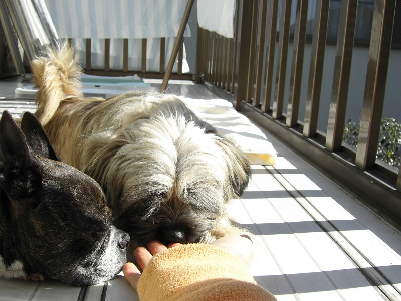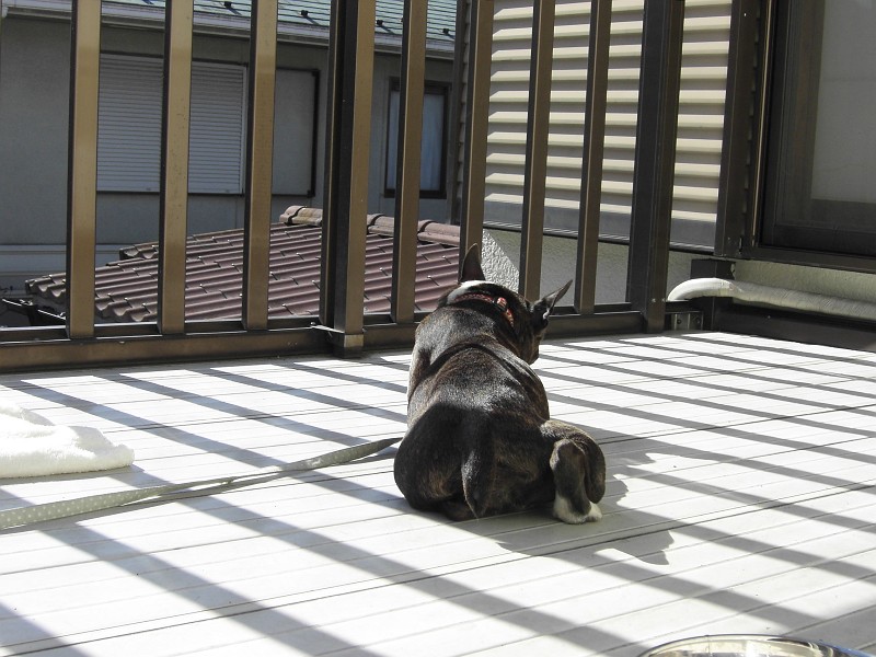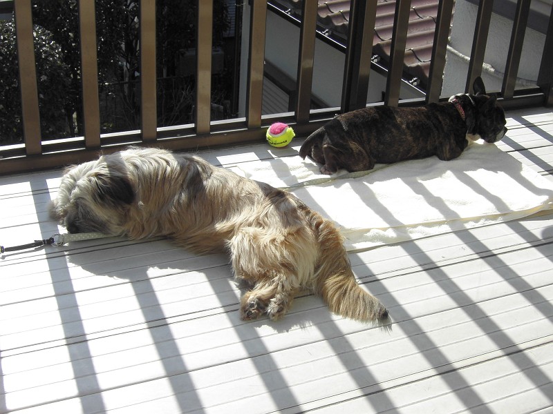 少し風はあったけど、気持ちよいベランダで、日光浴。