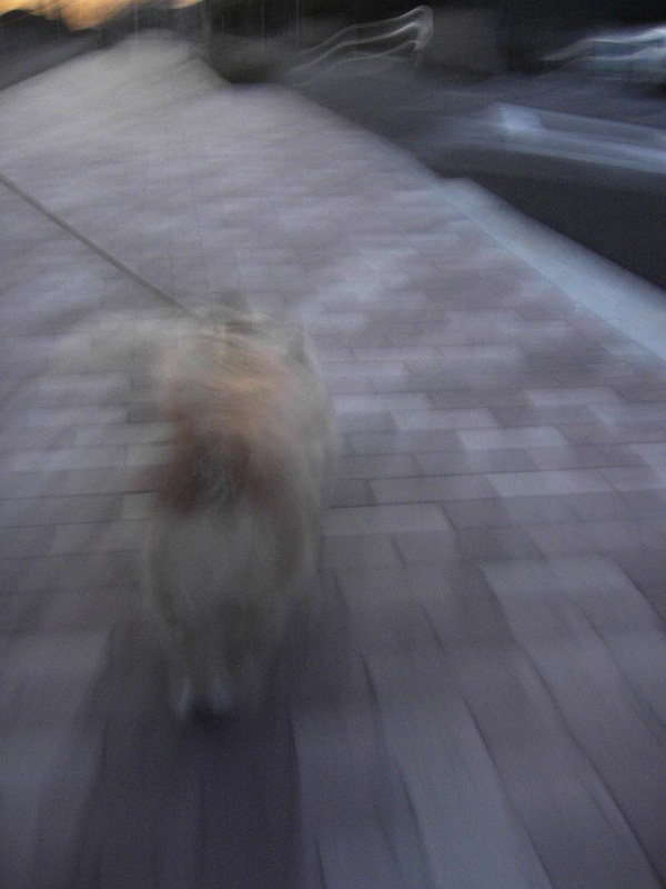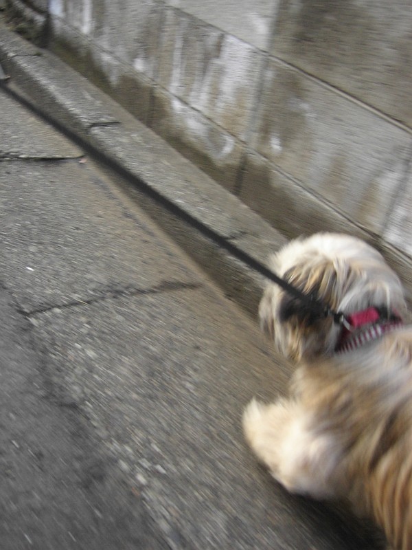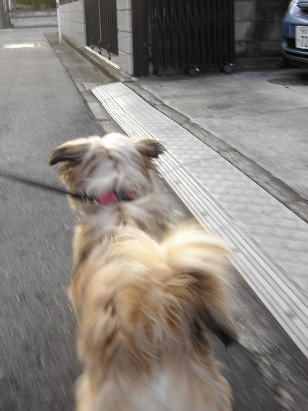 暗くなると、のんびり屋のラッキーも、急ぎ足に。