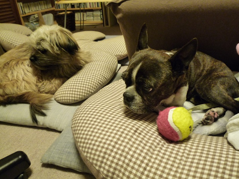 コーギー×シーズーmixのラッキーと、ラサ・アプソmix?のピッピ。