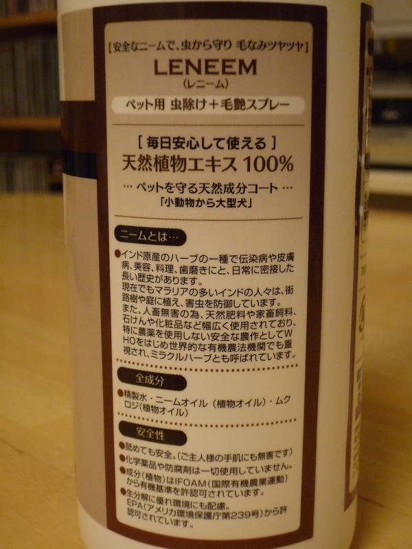 ・・・最近、「ニーム」という植物のエキスが入った、スプレーを使ってみました。
