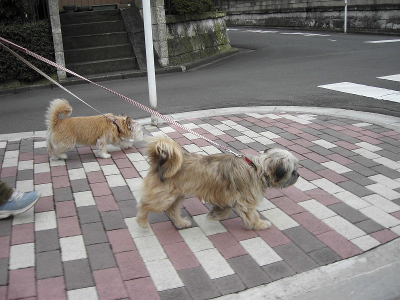 コーギー×シーズーmixのラッキーと、ラサ・アプソmix?のピッピ。