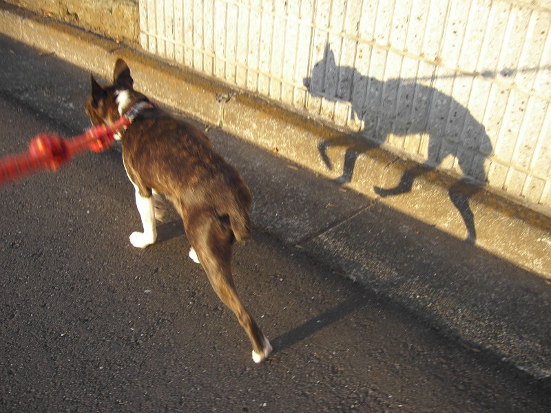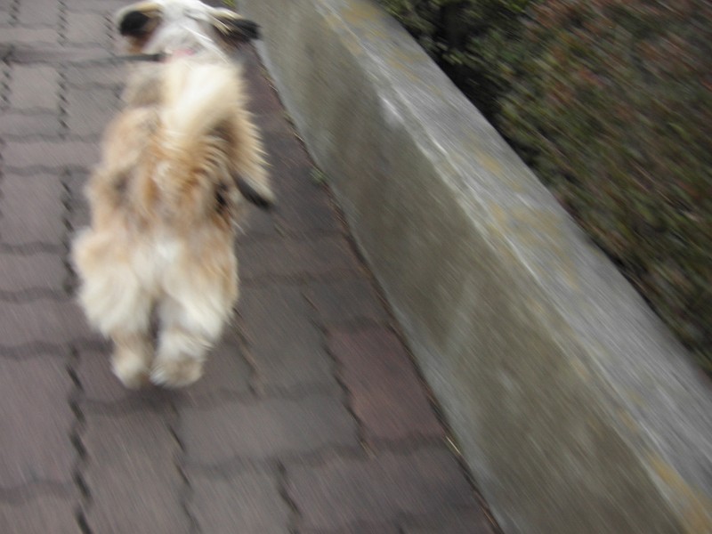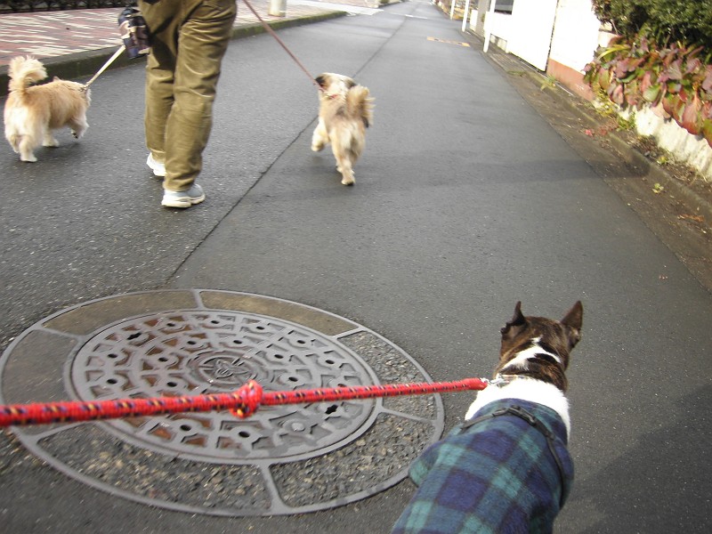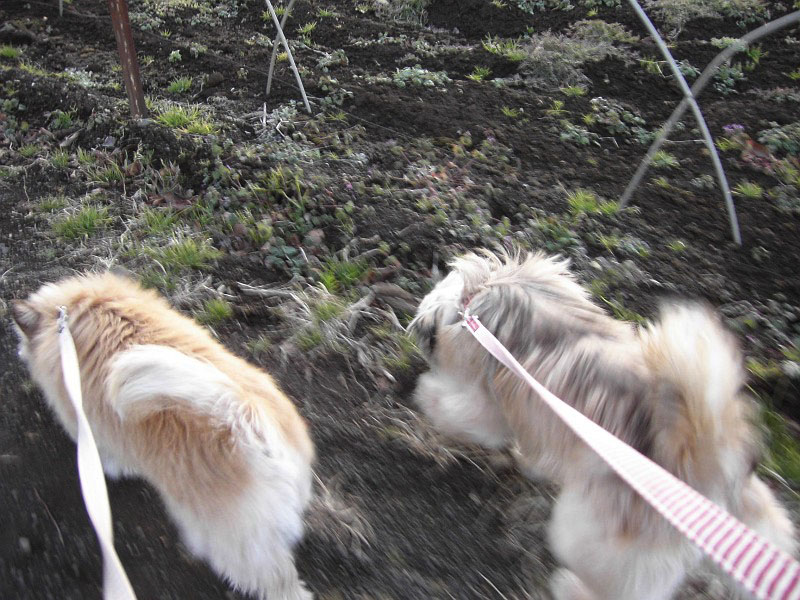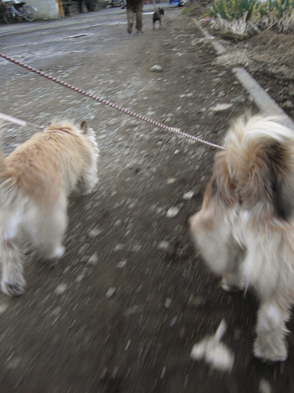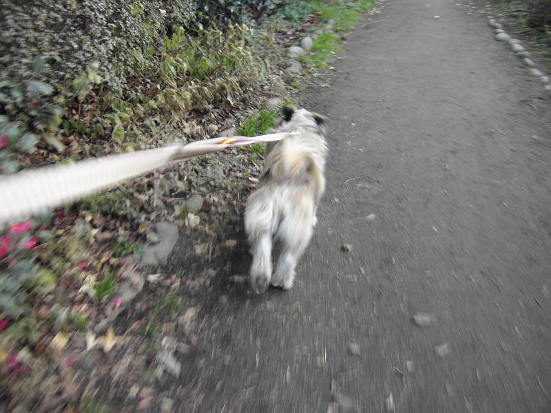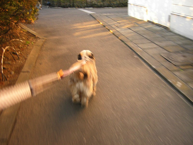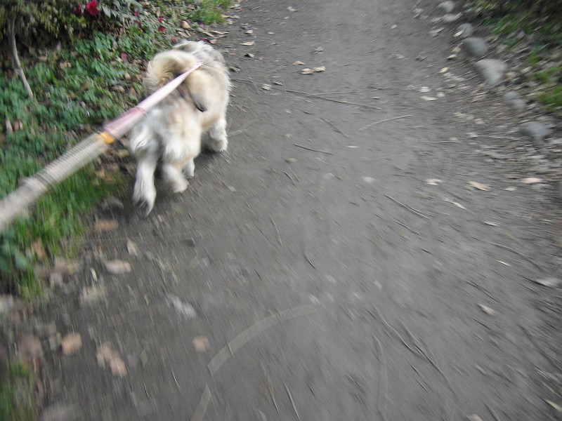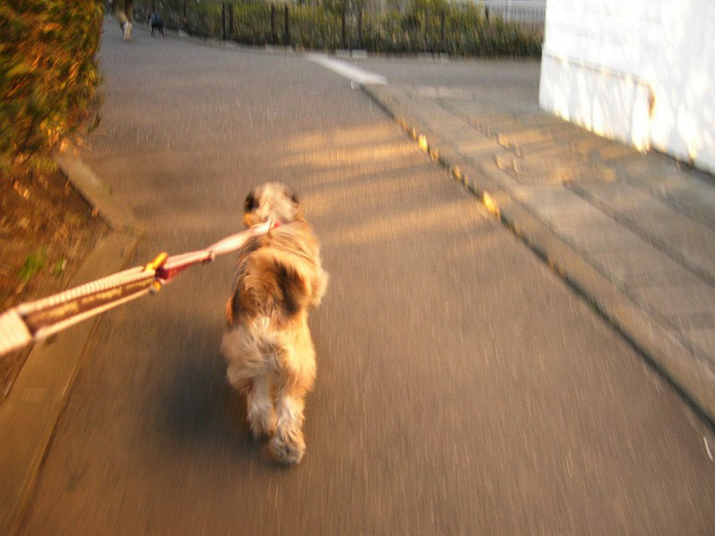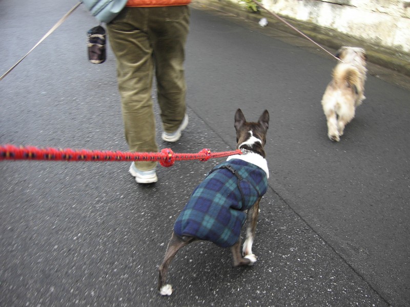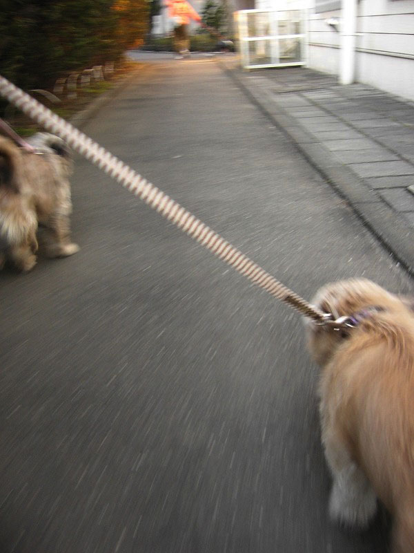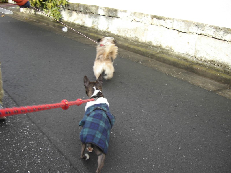 ・・・ラッキーは、あまり走りたくないので、ピッピに引っ張られるまま。いやいやです。