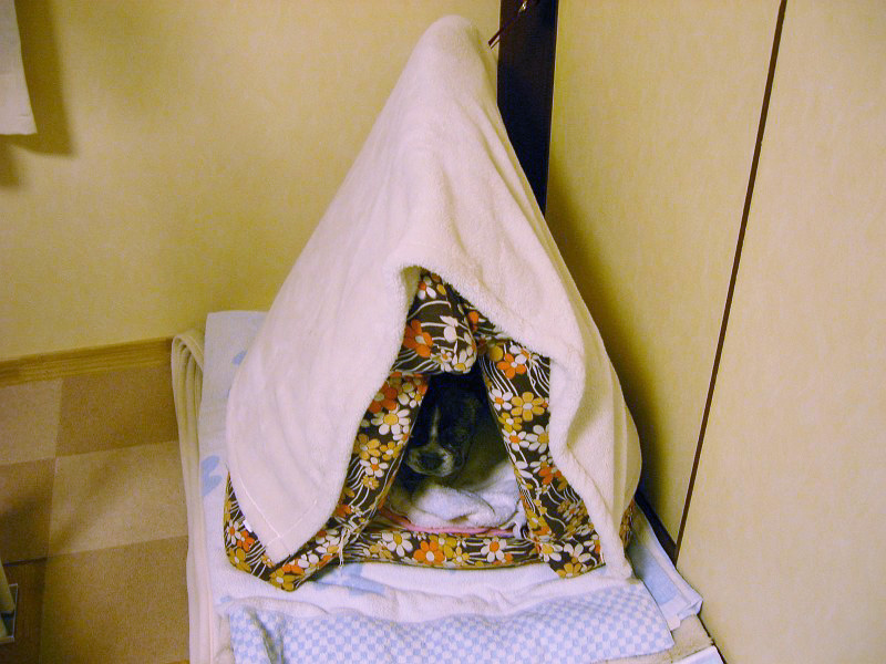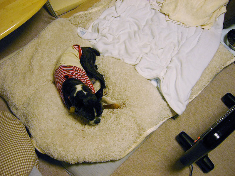 まりもが、夜いつもヒーターにくっつくように寒そうに寝ているので、マットレスをこんな風にして、