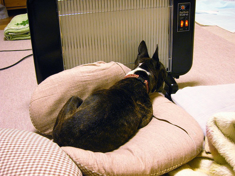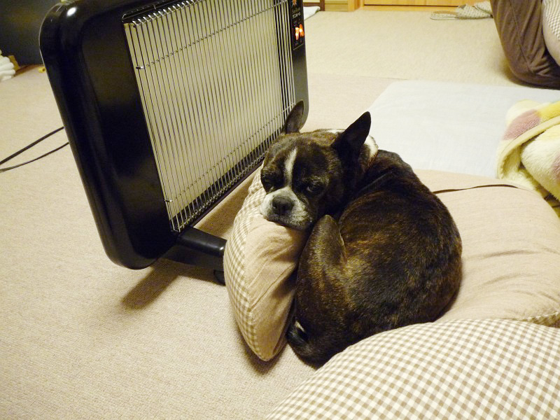 フリーになるとすぐにヒーターの前に陣取ります。