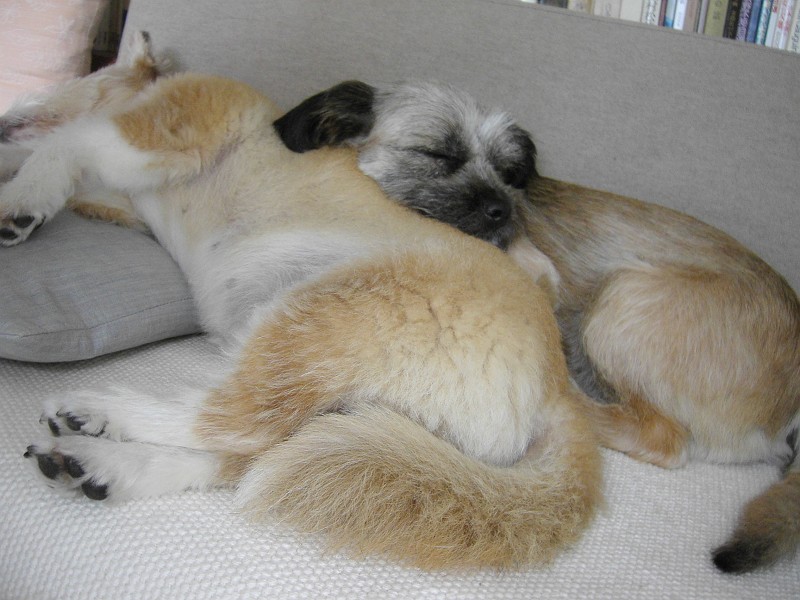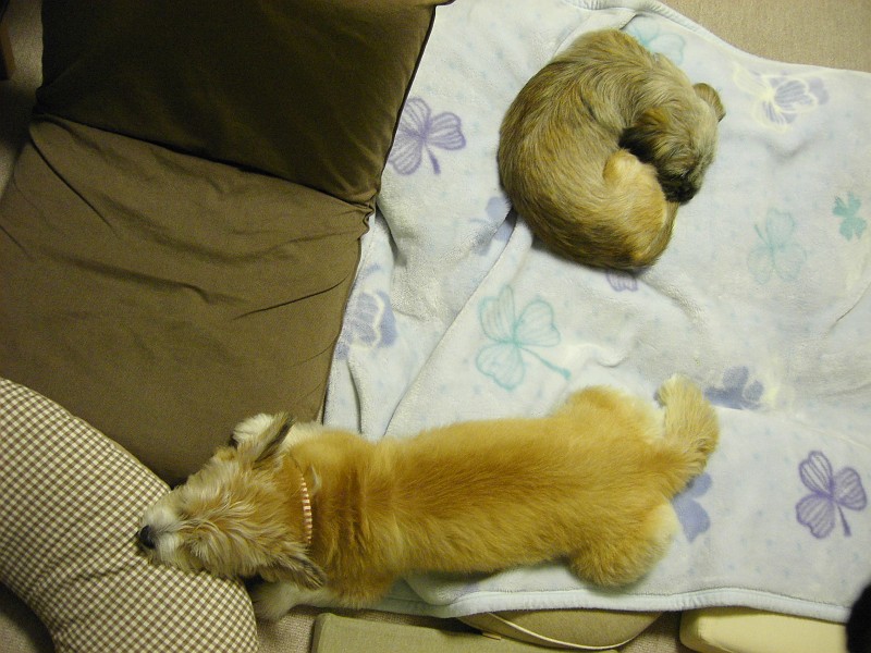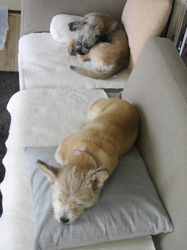 コーギー×シーズーmixのラッキーと、ラサ・アプソmix?のピッピ。