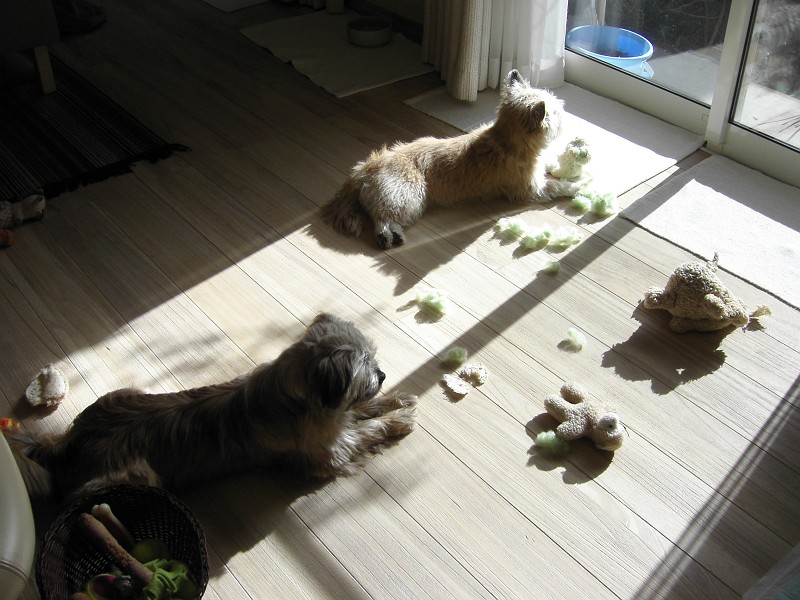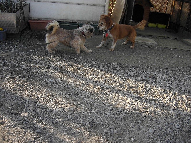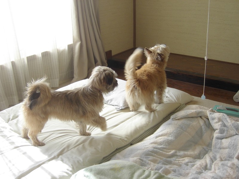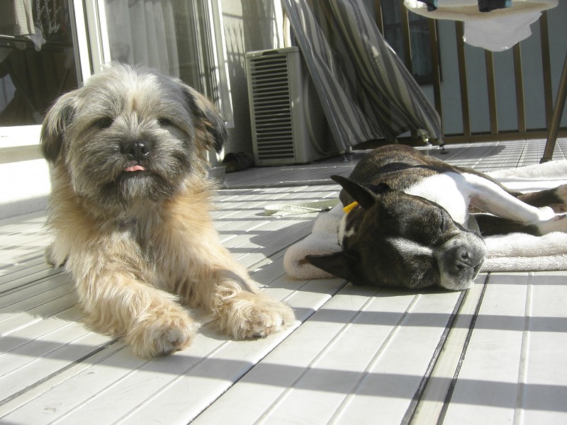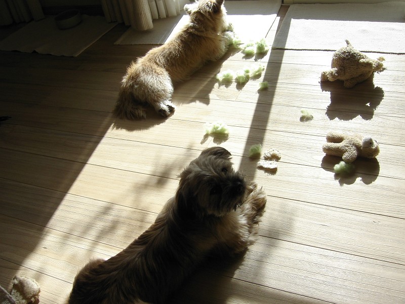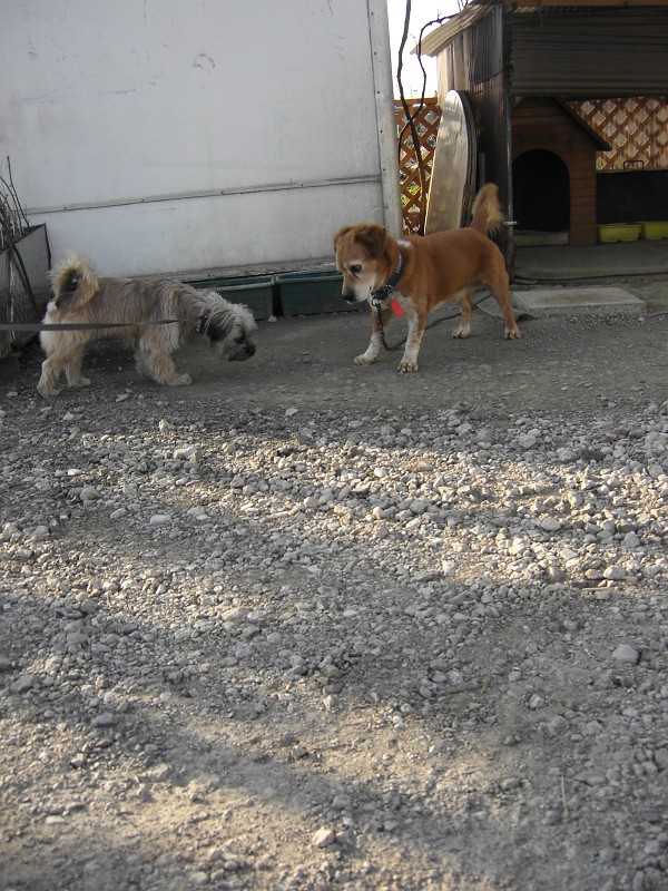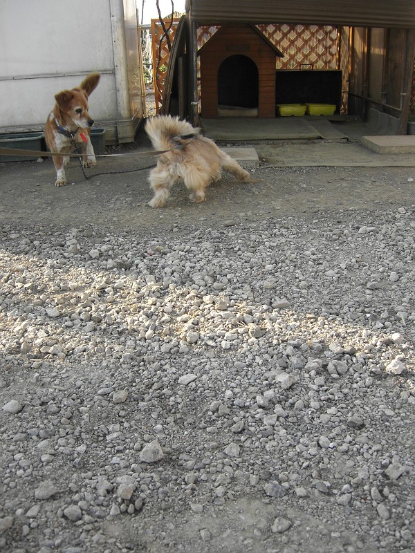 コーギー×シーズーmixのラッキーと、ラサ・アプソmix?のピッピ。