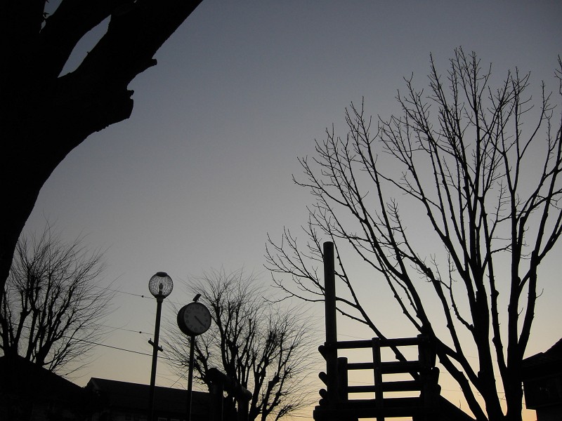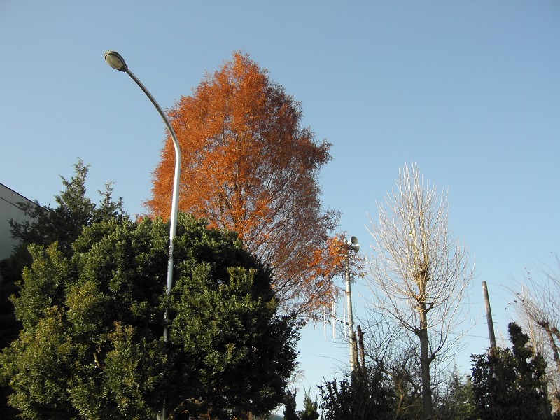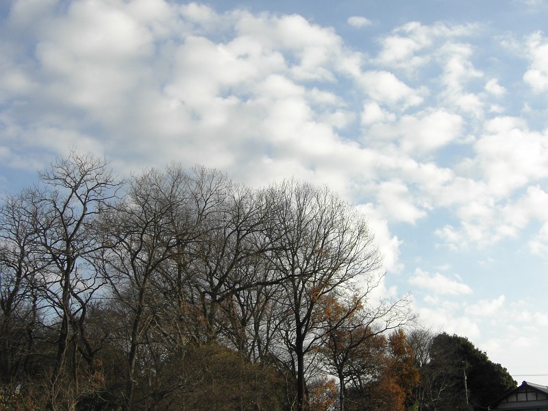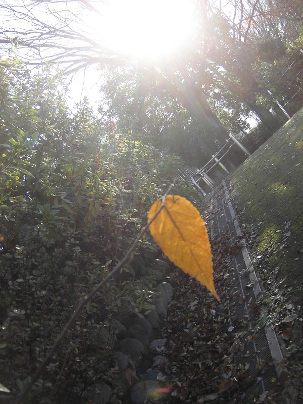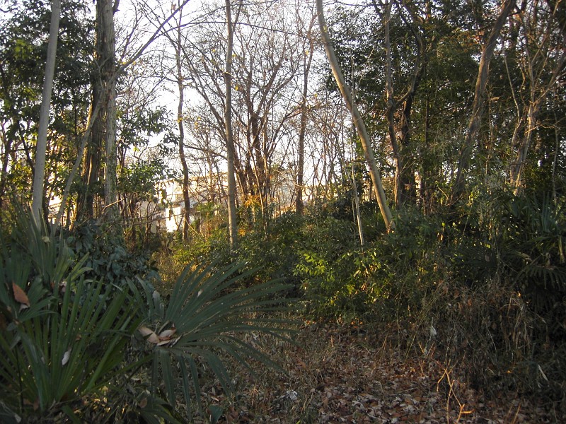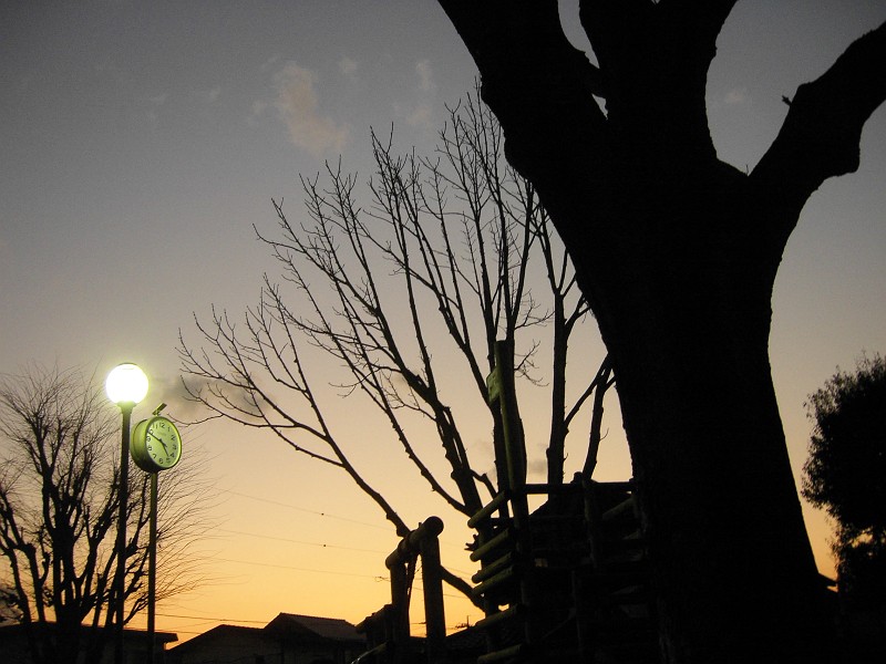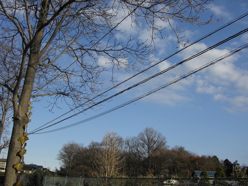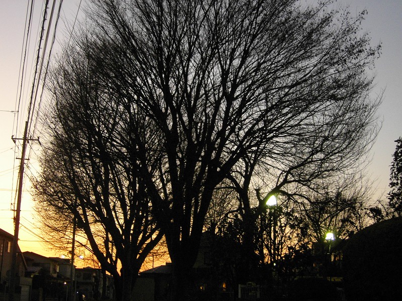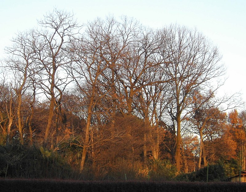 葉っぱの落ちた雑木林にも夕陽が射し込み