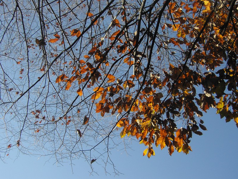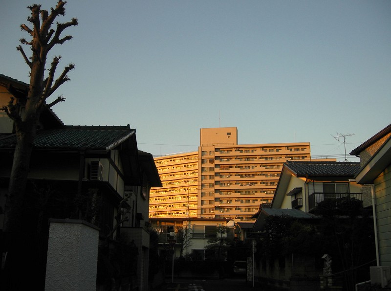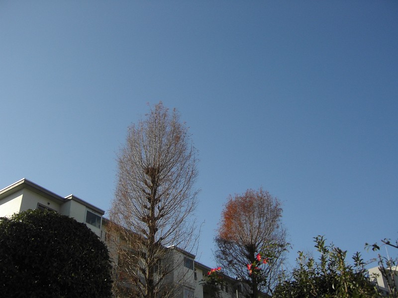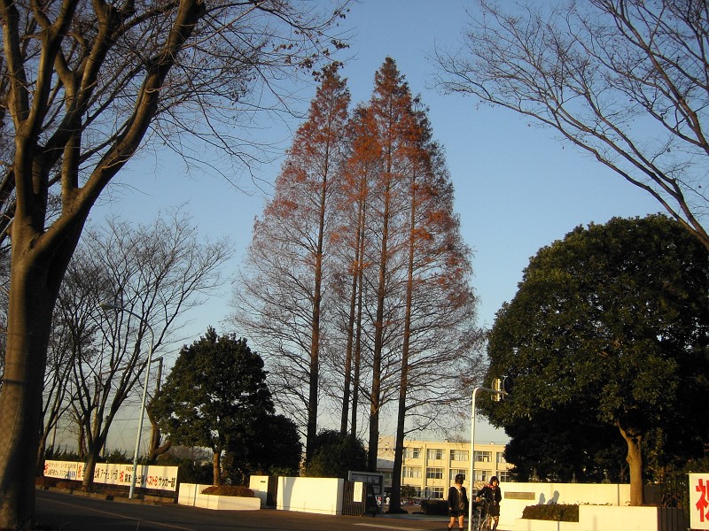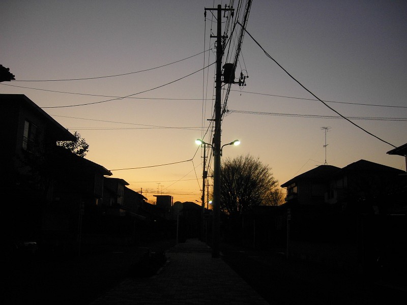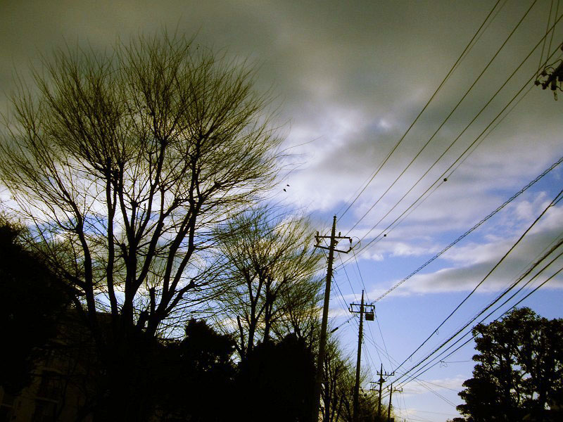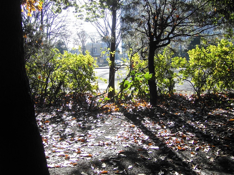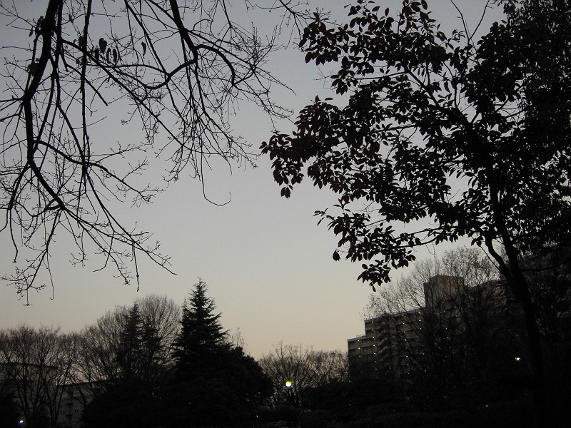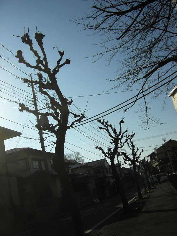 葉っぱの落ちた雑木林にも夕陽が射し込み