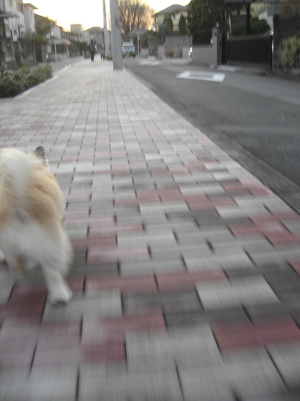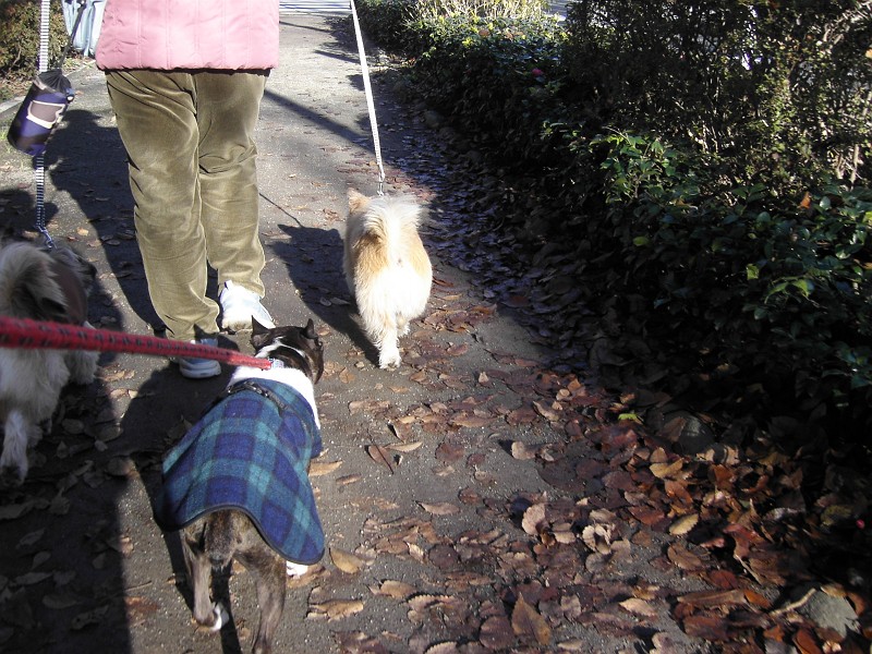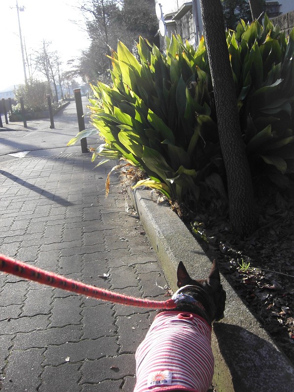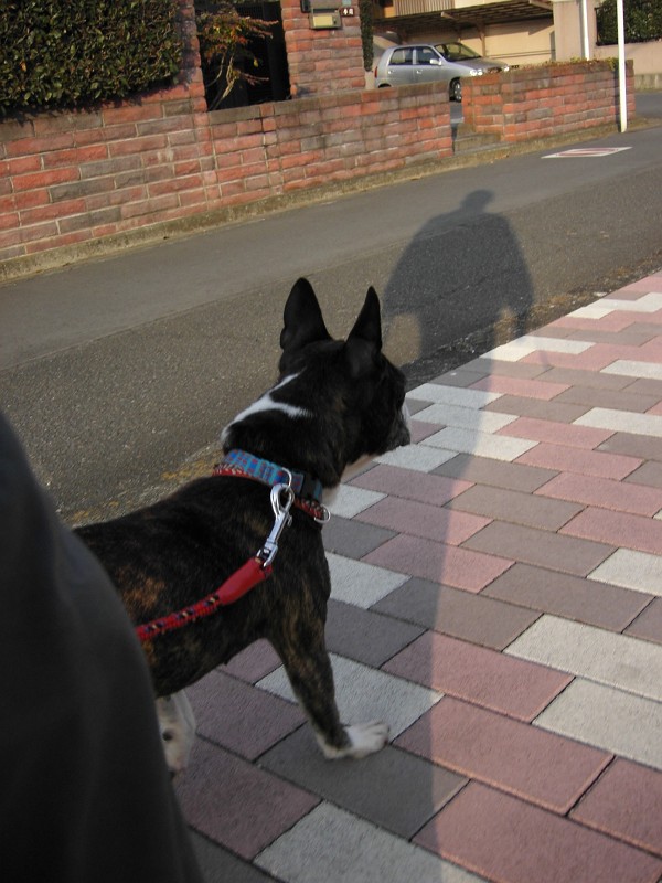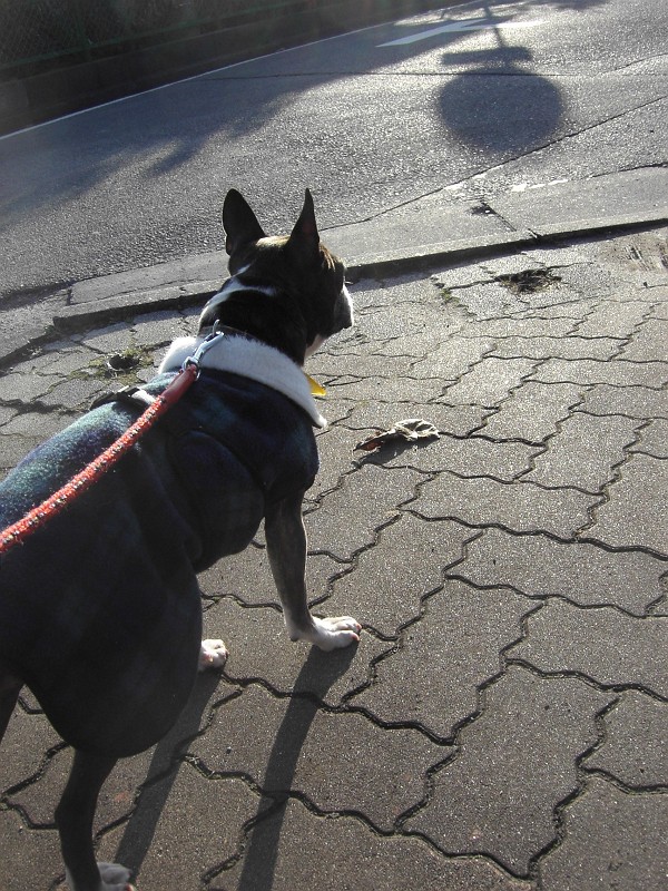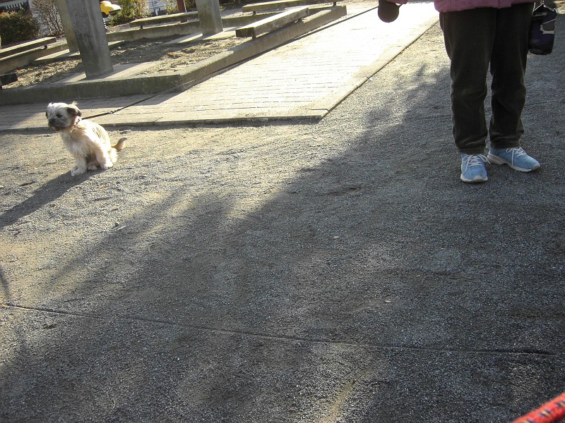 最近、ピッピは、散歩の途中で自主的におすわりします。