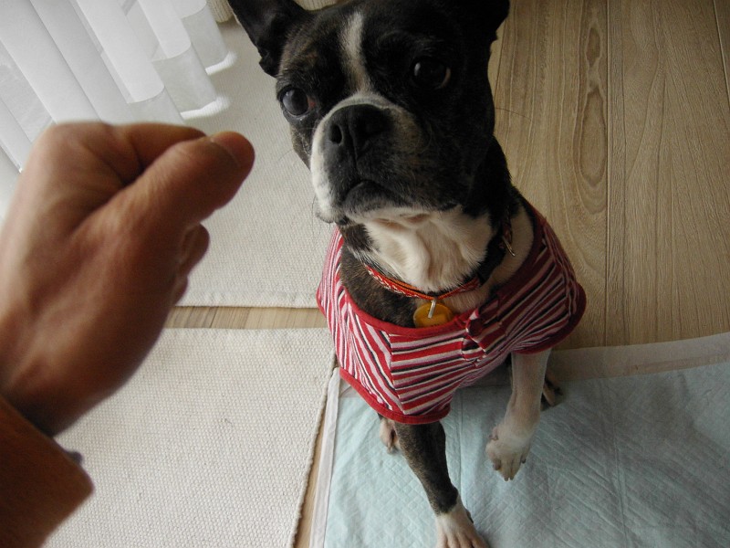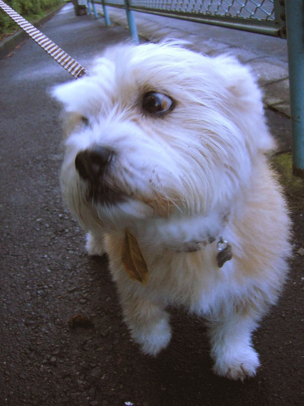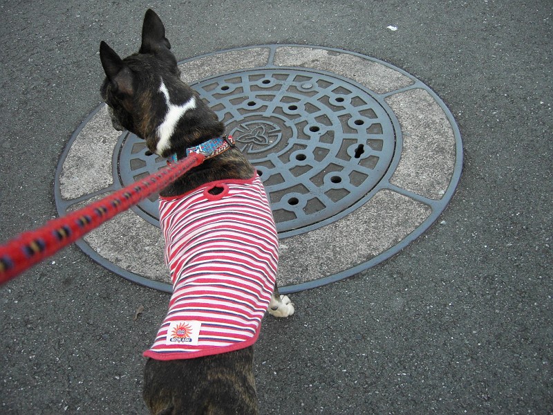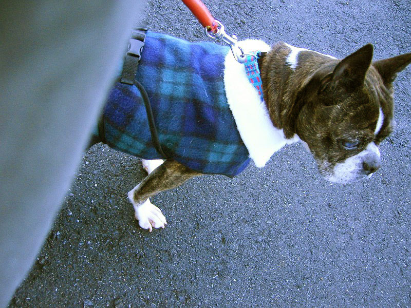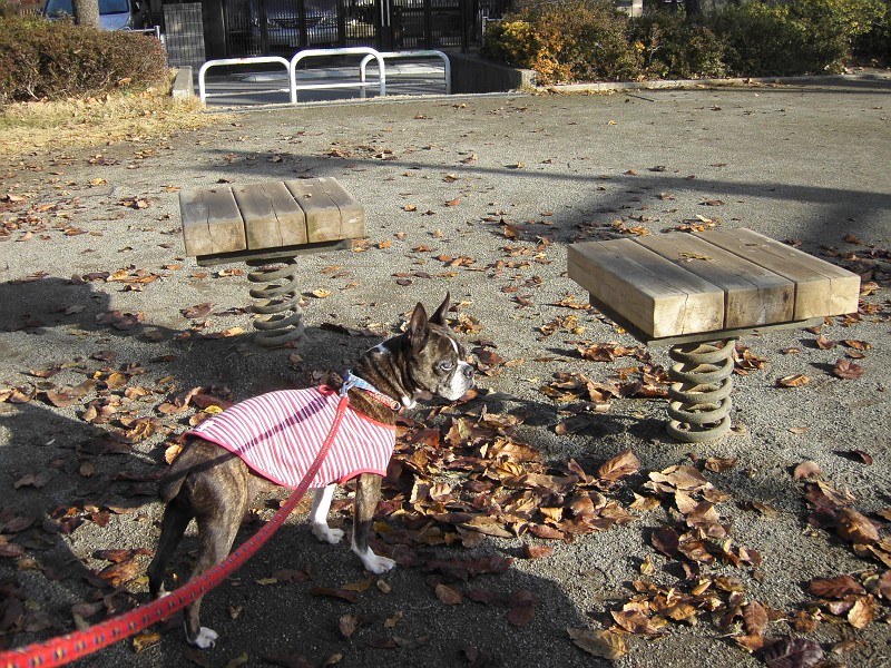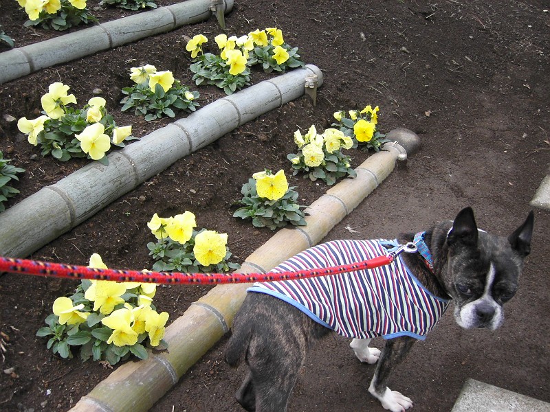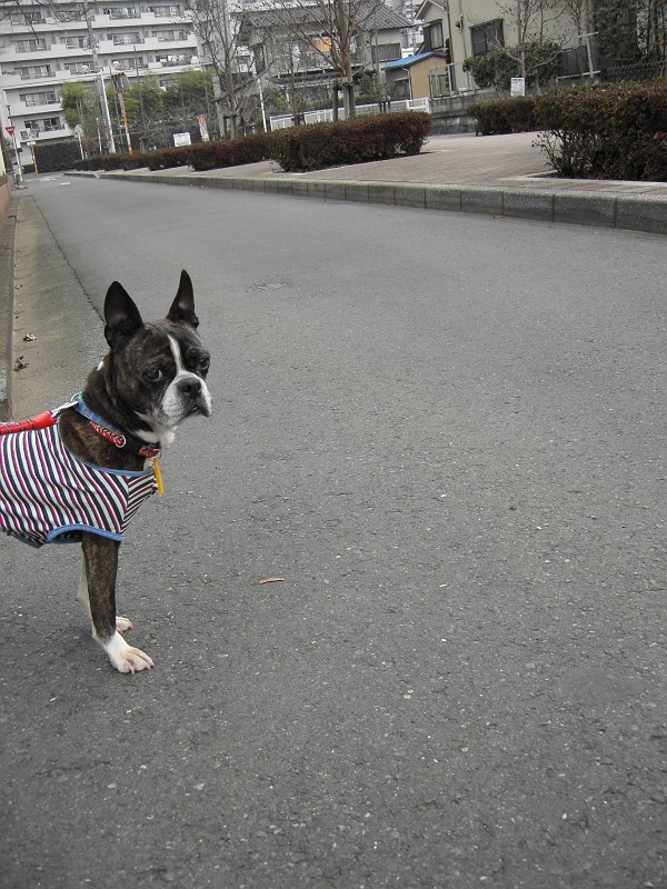 最近、ピッピは、散歩の途中で自主的におすわりします。