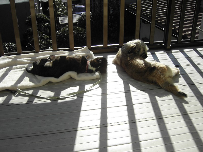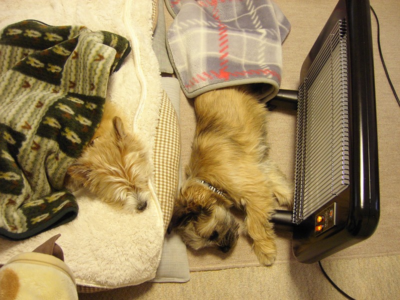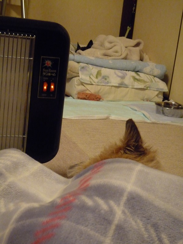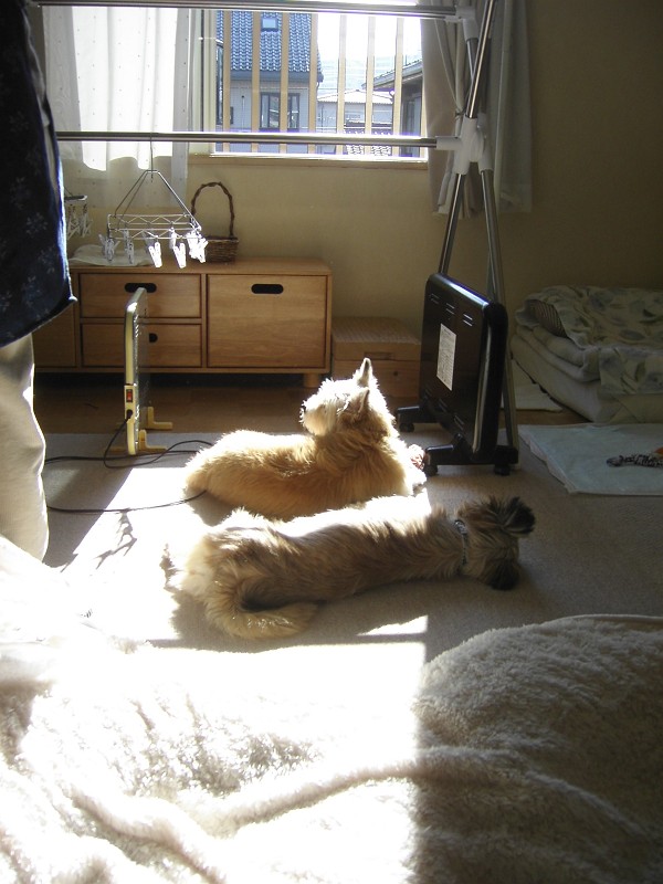 ・・・ふたりで、ヒーターの前でまったりしていました。