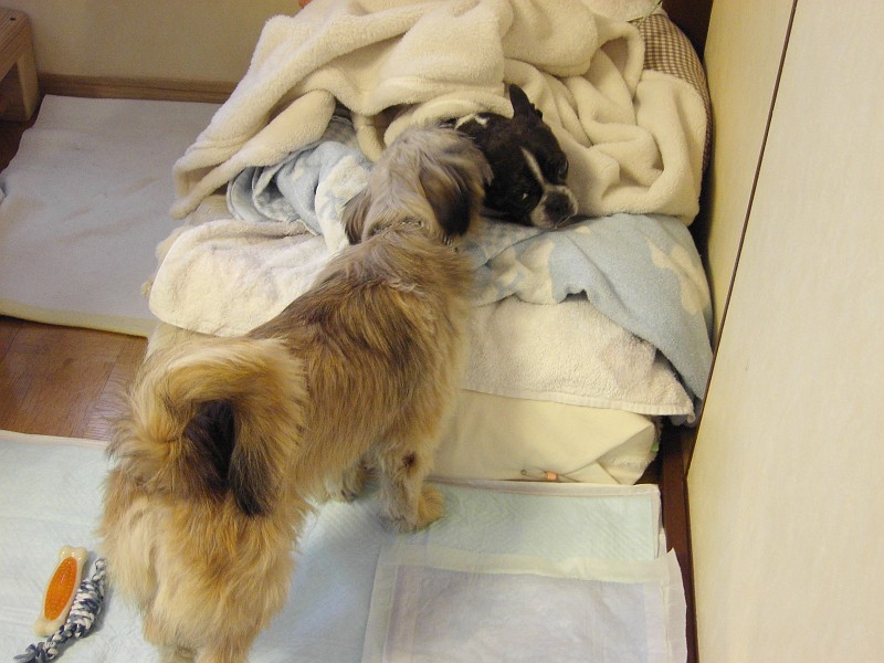 コーギー×シーズーmixのラッキーと、ラサ・アプソmix?のピッピ。