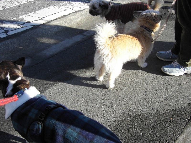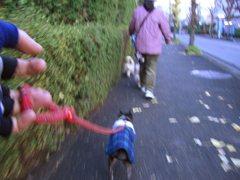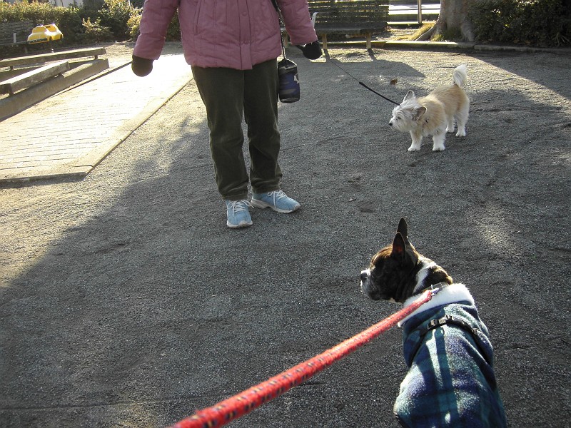 ラッキーも、まりもと同じように、ワンコを見つけるとずんずん向かって行ってしまいます。