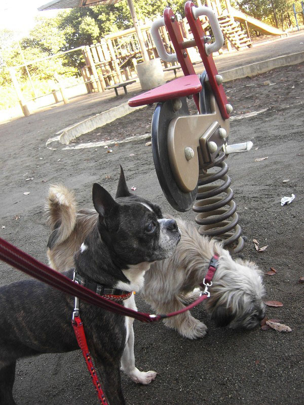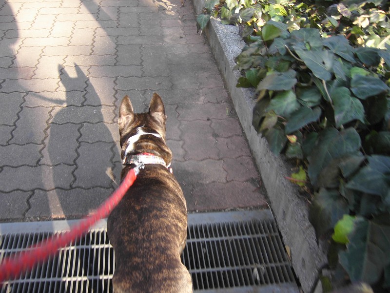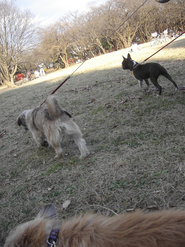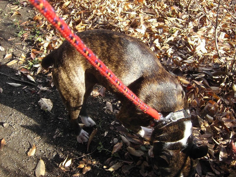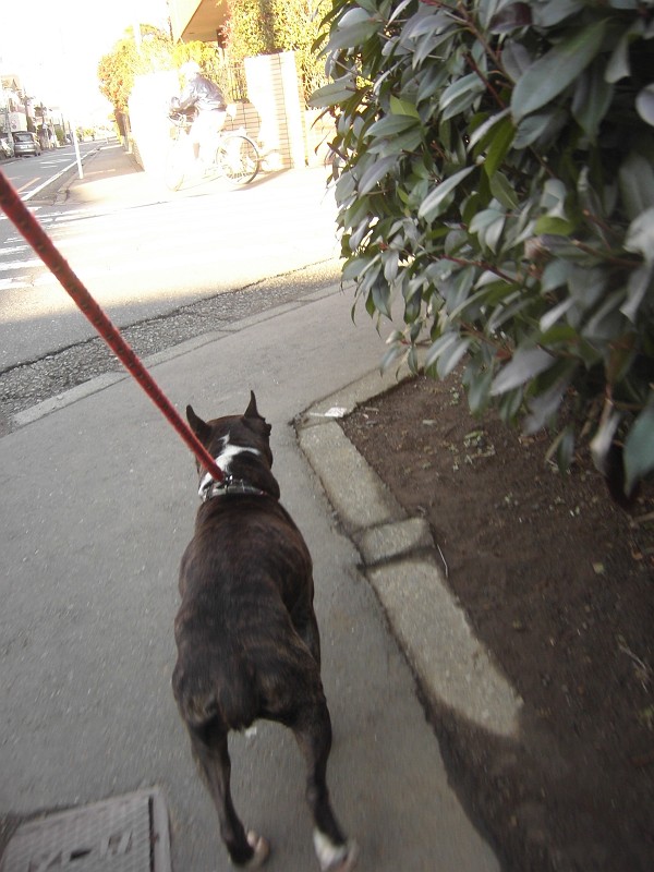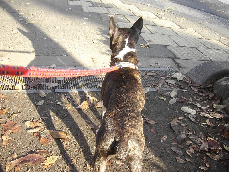 声だけでわからないときもありますが、ちょっとリードを「ツン」と引けば、わかってくれます。
