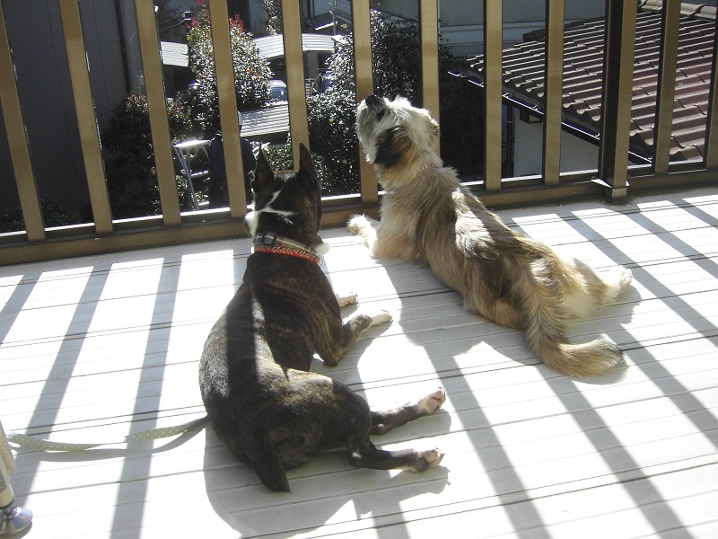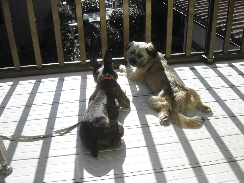 コーギー×シーズーmixのラッキーと、ラサ・アプソmix?のピッピ。