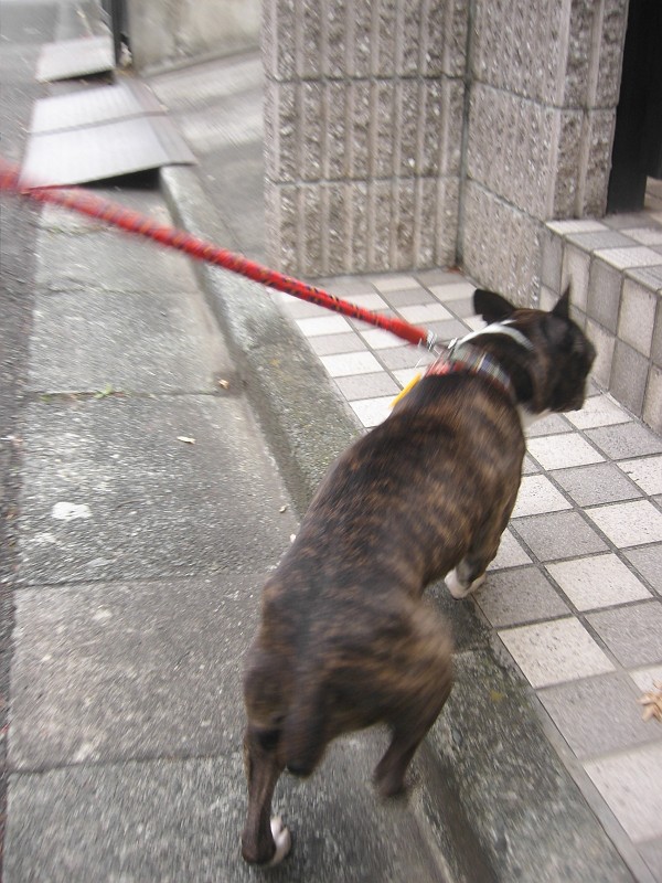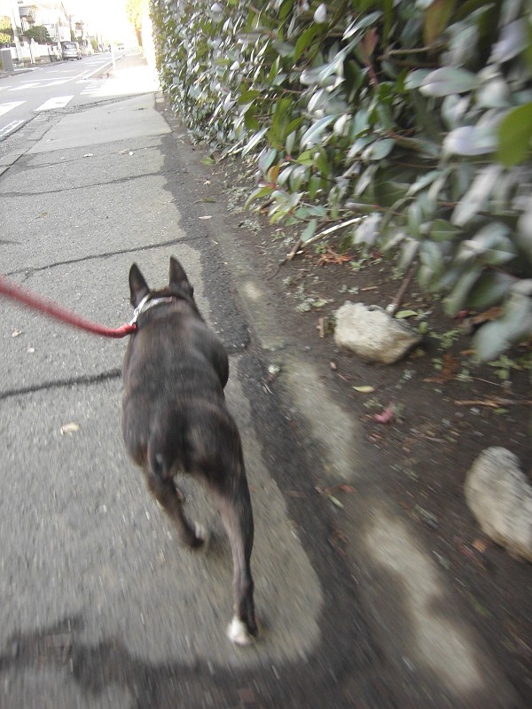 今日から散歩で、まりもに「ゆっくり」と声をかけながら歩くことにしました。