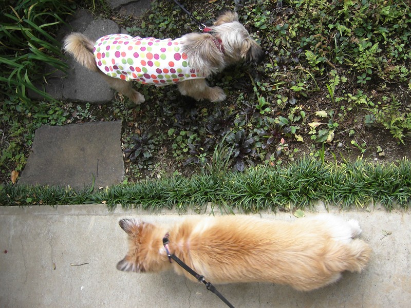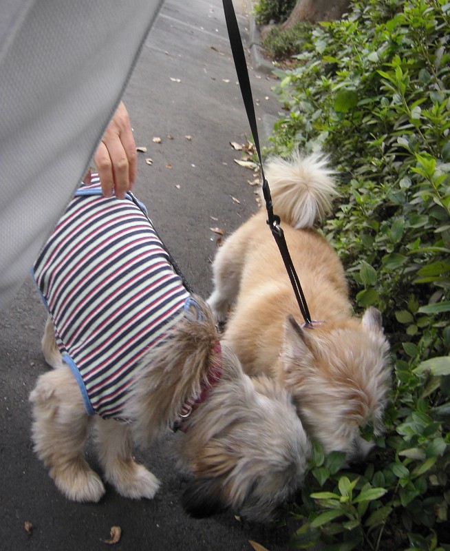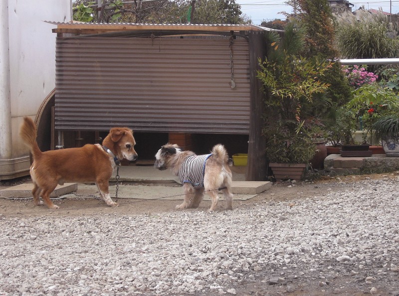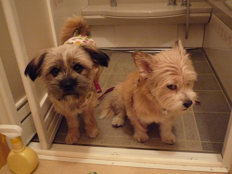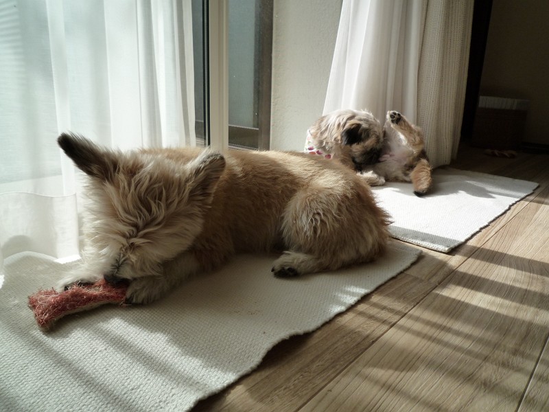 コーギー×シーズーmixのラッキーと、ラサ・アプソmix?のピッピ。