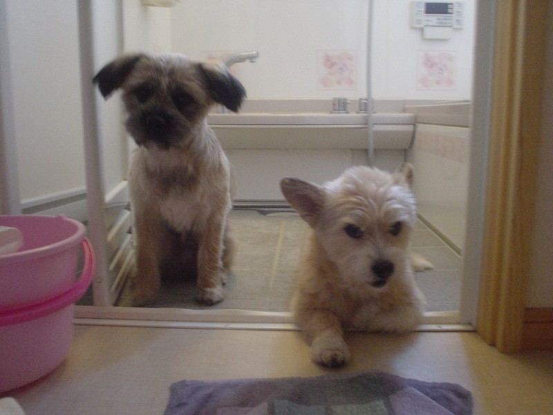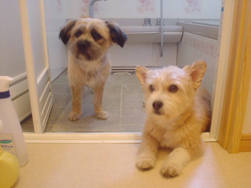 コーギー×シーズーmixのラッキーと、ラサ・アプソmix?のピッピ。