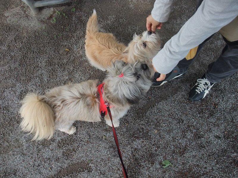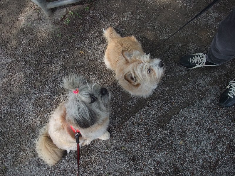 コーギー×シーズーmixのラッキーと、ラサ・アプソmix?のピッピ。