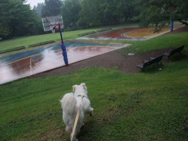 今朝の航空公園、7時前、雨上がりということで、人も犬も少ない。